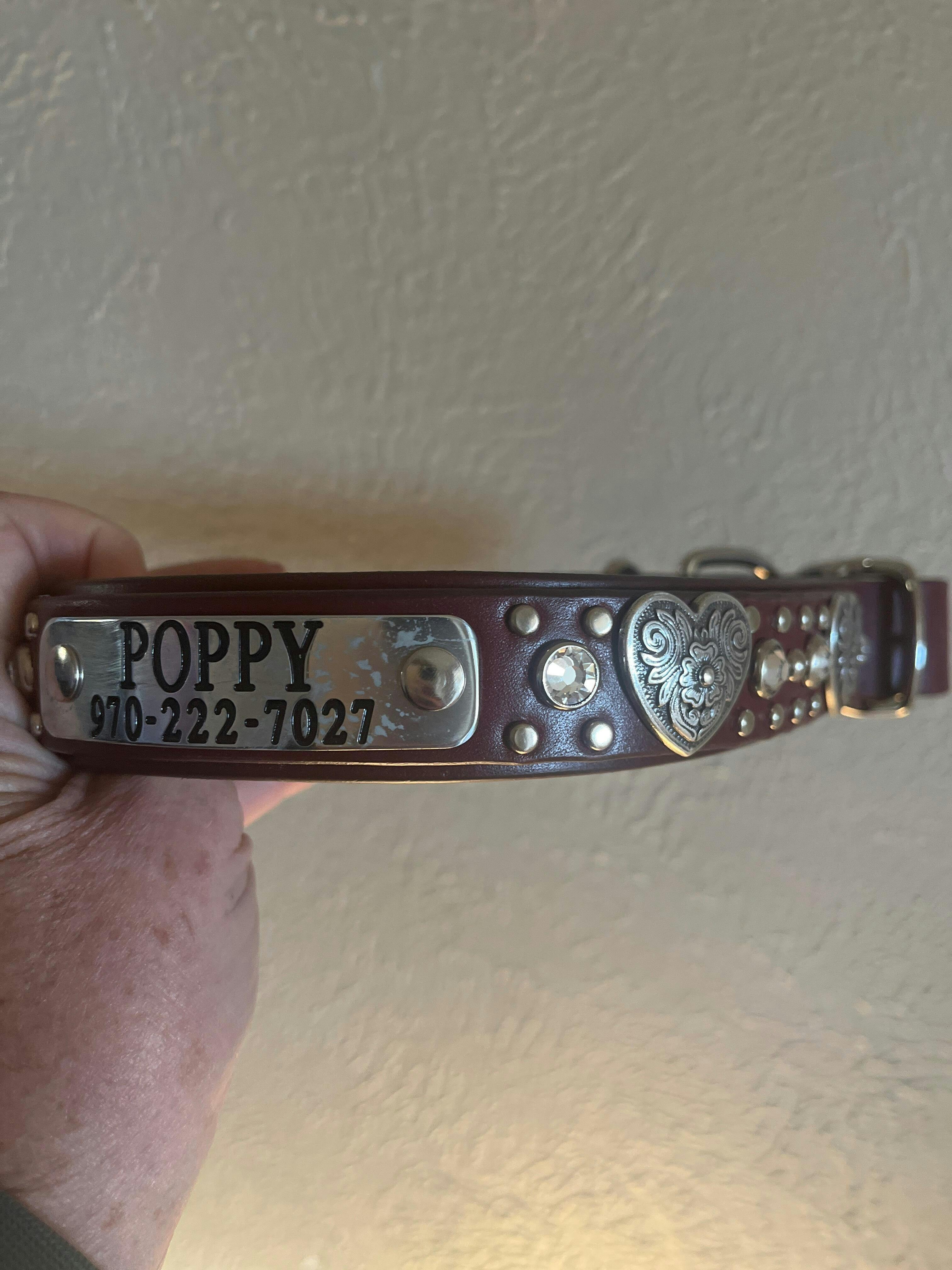 Indulge your beloved furry companion with our luxurious Small Dog Leather Collar Milan, adorned with heart conchos and Swarovski crystals. Handcrafted with fine latigo leather, it's perfect for small breed dogs who deserve nothing but the best. Elevate your dog's style with this elegant and exclusive collar. Pretty collar with heart conchos for your special baby! Comes with mini flat top studs, and stunning crystals that make it complete. Nameplates can be added to collar. Add a NAMEPLATE here.  Need a bigger size check it out here: Milan